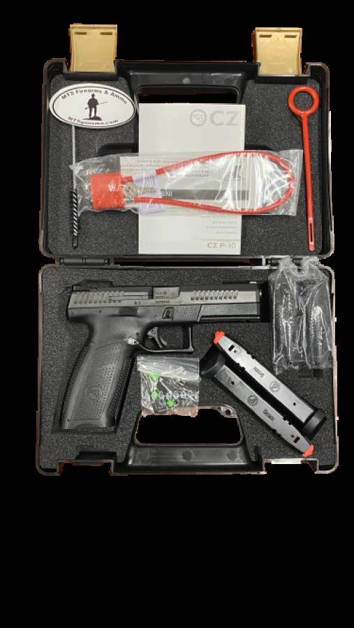 CZ's P-10 pistol features a grip angle which avoids that "brick-in-the-hand" feeling that has plagued many in the striker-fired genre, allowing it to point naturally. A mild palm swell, deep beavertail and three interchangeable backstraps make the P-10 fit a wide variety of hands as if it were built for them. Its trigger is designed to minimize creep and stacking, and rebounds with a short, positive reset, meaning single shots can be meticulously placed while follow-ups are effortless. The fiber-reinforced polymer frame and hardy nitride finish are made for the daily grind. A generous trigger guard allows use with gloved hands while being undercut to allow as high a grip as possible. Features an ambidextrous slide release and swappable mag release.